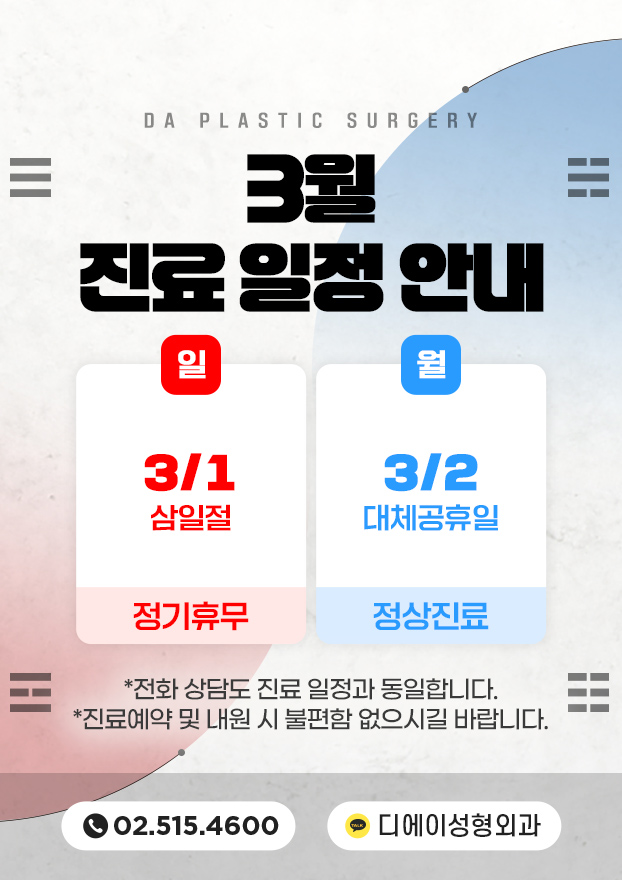 의료기관명칭 : 디에이성형외과 사업자등록번호 : 214 - 14 - 97135
